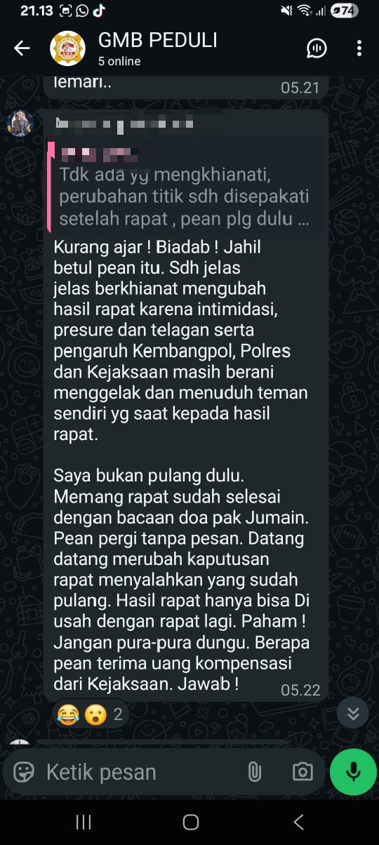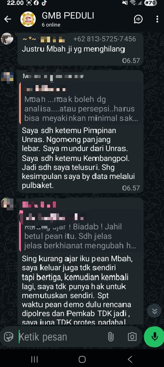 Sontak WA group yang dikonsumsi banyak orang menjadi perdebatan sengit, bahkan setelah aksi pun sempat melontarkan tuduhan bahwa koordinator Aksi masuk angin dan sudah dapat uang dari Oknum dengan umpatan nada kotor.