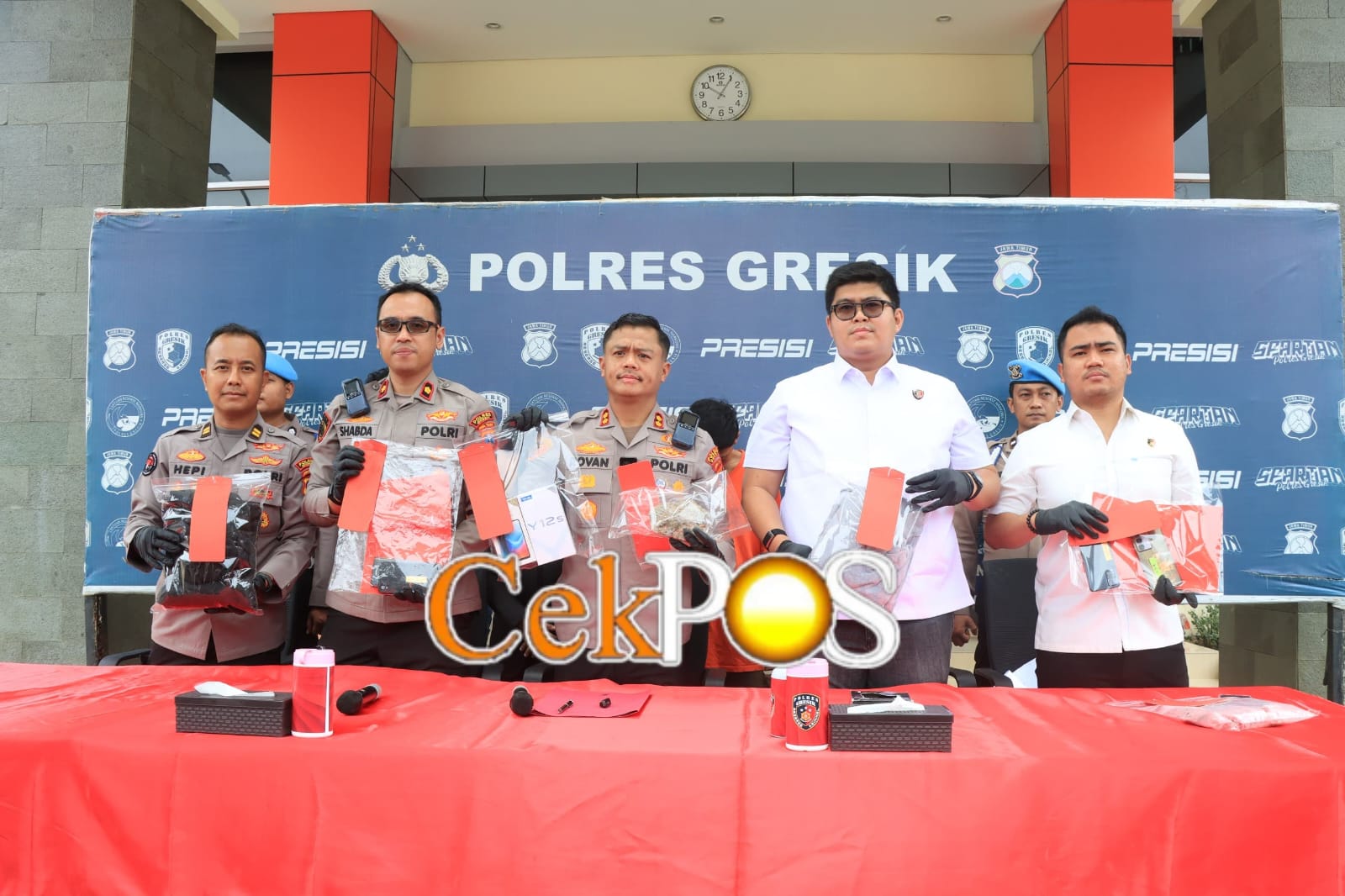 Kapolres Gresik AKBP Rovan Richard Mahenu dalam press conference yang digelar di halaman Mapolres Gresik Polda Jatim menyampaikan apresiasi setinggi-tingginya kepada masyarakat atas doa, dukungan, serta kerja sama yang diberikan sehingga para pelaku dapat diamankan dalam waktu relatif singkat.