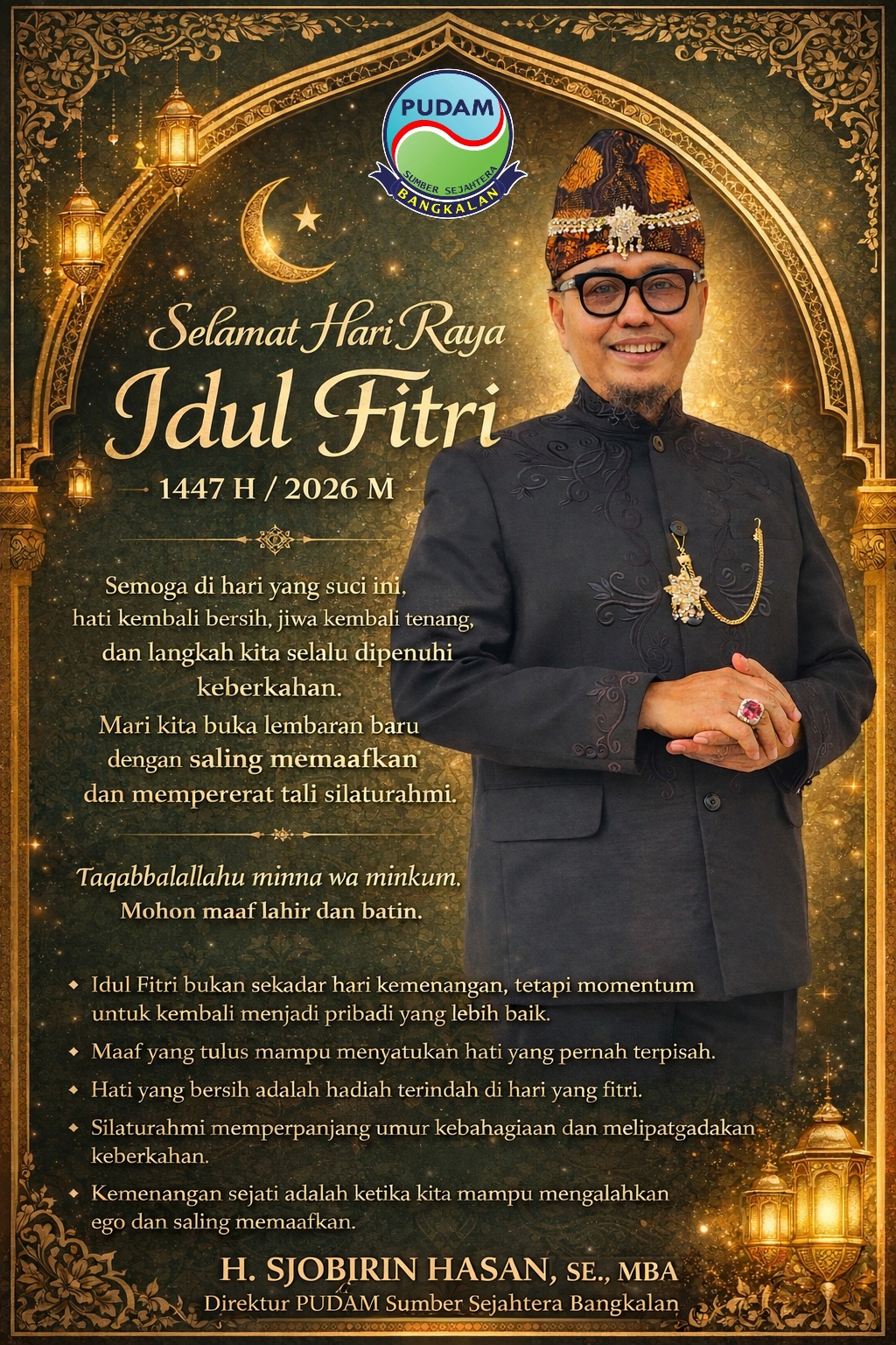 Hal inilah yang disampaikan oleh Direktur Utama Perusahaan Daerah Air Minum (PDAM) Bangkalan H.Sobirin Hasan.menjelang Idul Fitri 1447 Hijriyah beberapa hari lagi.