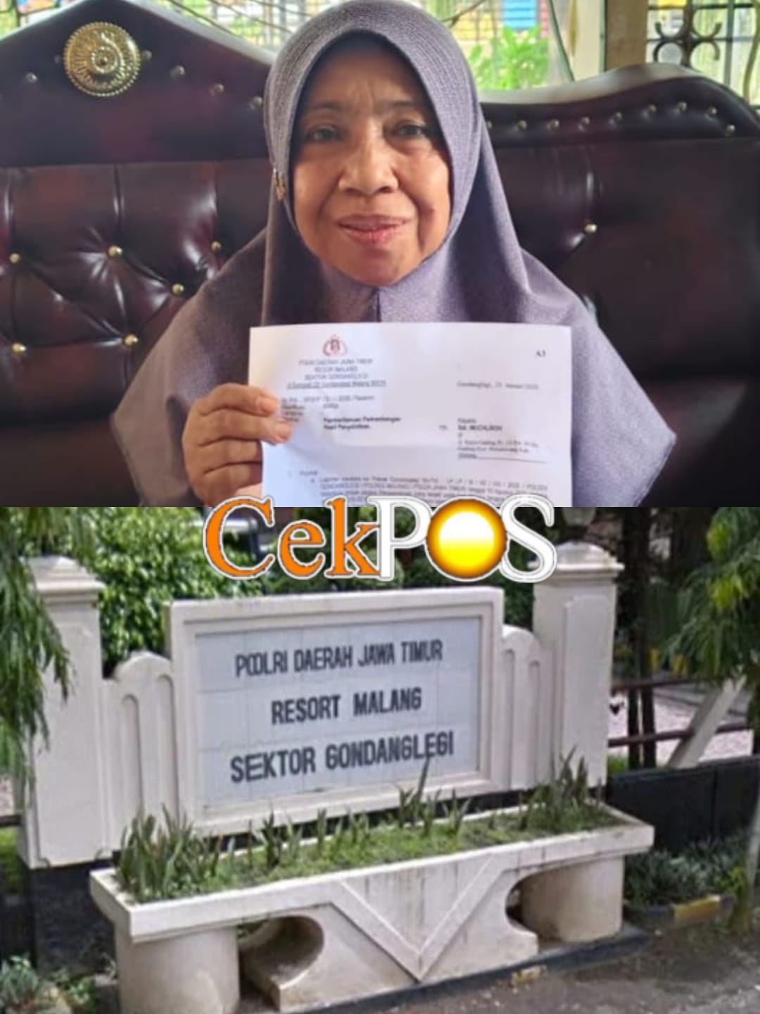 Tanggal : 25 Agustus 2025 Tentang Tindak Pidana Penganiayaan yang terjadi pada hari Minggu tanggal 24 Agustus 2025 sekira pukul 09.00 WIB dengan pelapor sekaligus korban Hj Muclisoh,warga Gondanglegi Kabupaten Malang ditengarai masih berjalan di tempat.