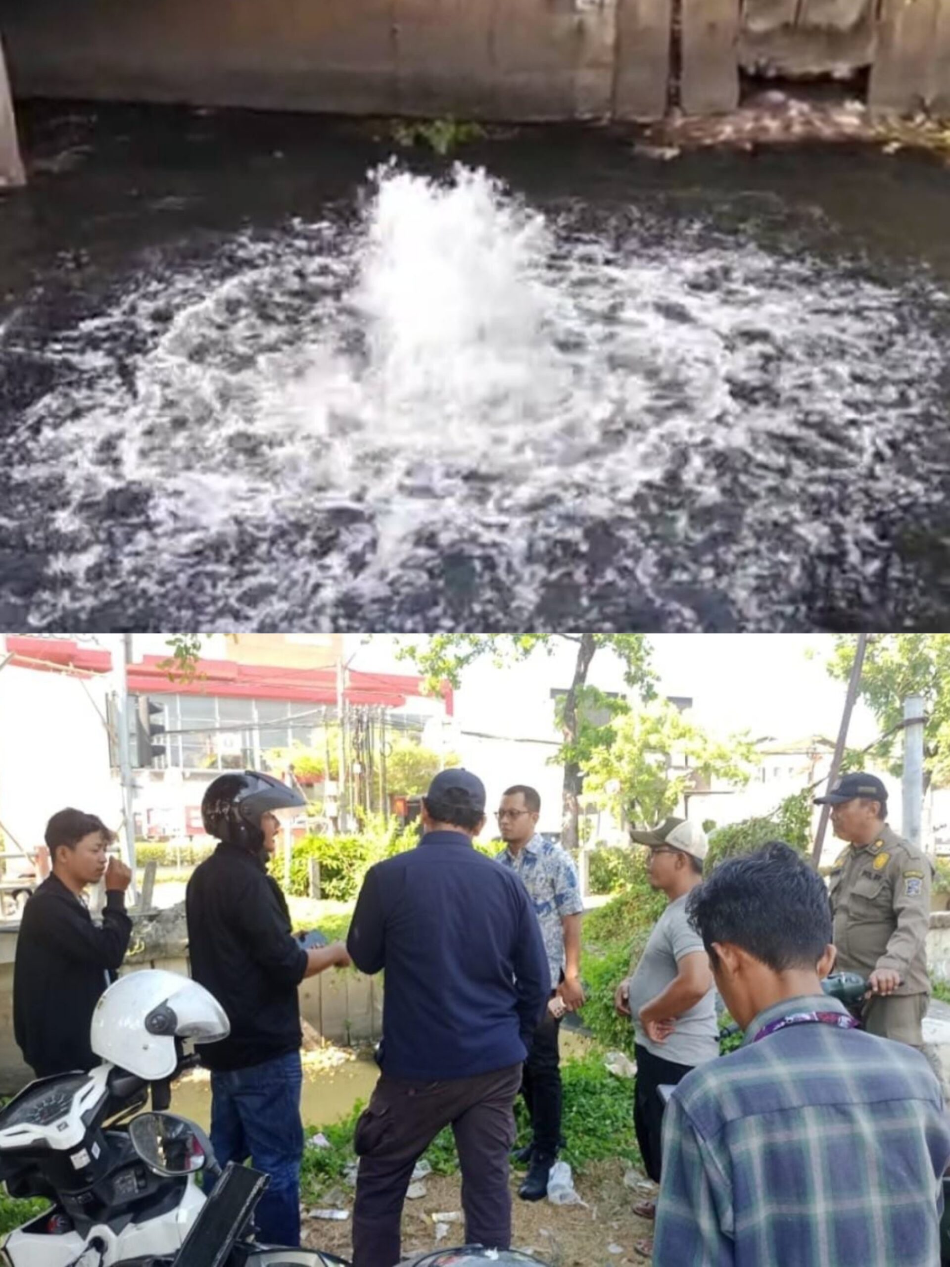 Berdasarkan hasil pemeriksaan awal, titik semburan berada tepat di tengah aliran sungai dan bersifat muncul-tenggelam. Setelah dilakukan koordinasi dengan pihak PDAM dan Gas Negara, dipastikan bahwa tidak ada jaringan pipa air maupun gas di bawah sungai tersebut.