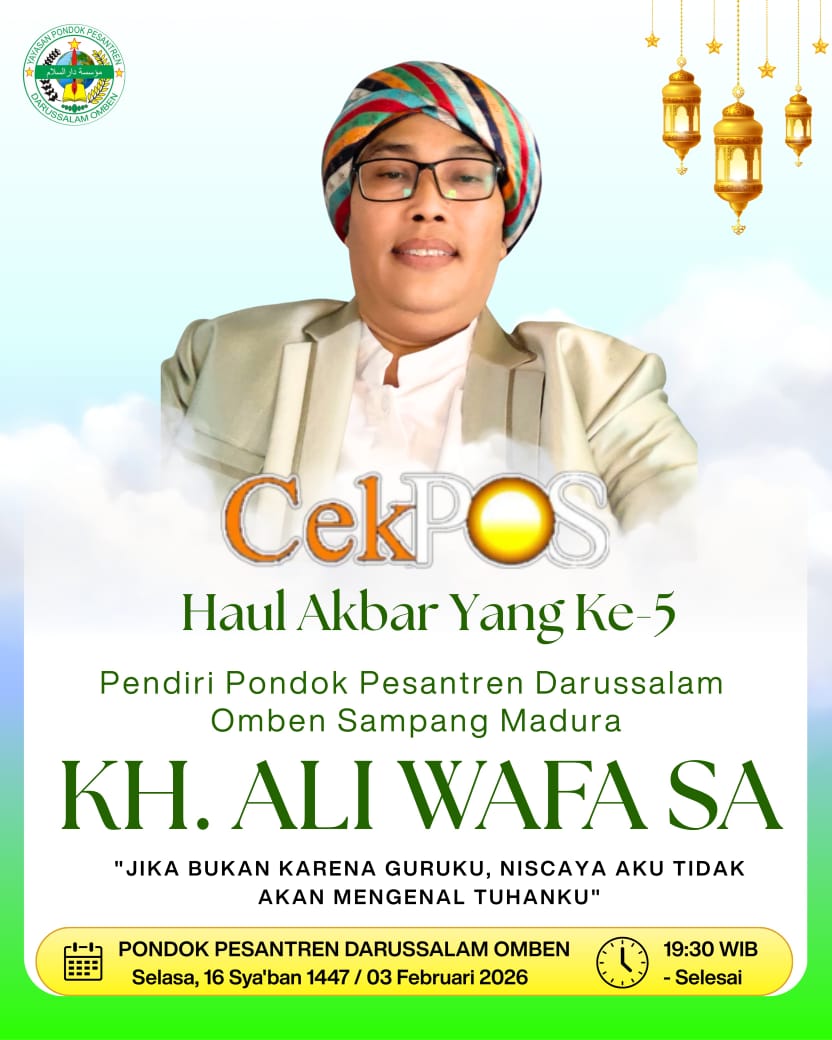 SAMPANG, Cekpos.id – Pondok Pesantren Darussalam, Omben, Sampang, Madura, tengah bersiap menggelar hajatan besar dalam rangka memperingati Haul Akbar ke-5 Al-Maghfurlah KH. Ali Wafa SA. Rangkaian acara yang penuh khidmat ini dijadwalkan berlangsung selama sepekan, mulai akhir Januari hingga puncaknya pada awal Februari 2026.