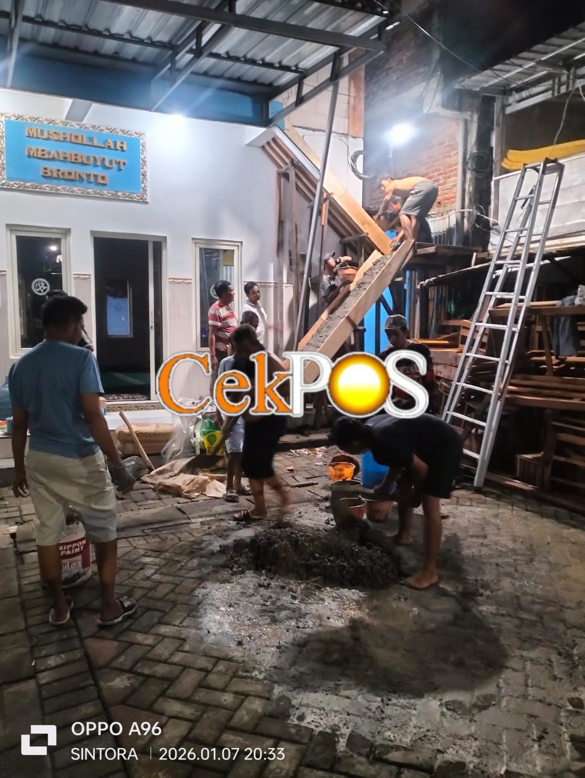 Surabaya, Cekpos.id – Semangat gotong royong dan kebersamaan terus terjaga di tengah masyarakat Kampung Sidonipah, RT 04 RW 02, wilayah perbatasan Simolawang RW 01, Kecamatan Simokerto, Kota Surabaya. Pada Rabu malam, 7 Januari 2026, warga secara swadaya melaksanakan pengecoran lanjutan lantai satu Musholla Bah Buyut Bronto pada pukul 20.01 WIB.