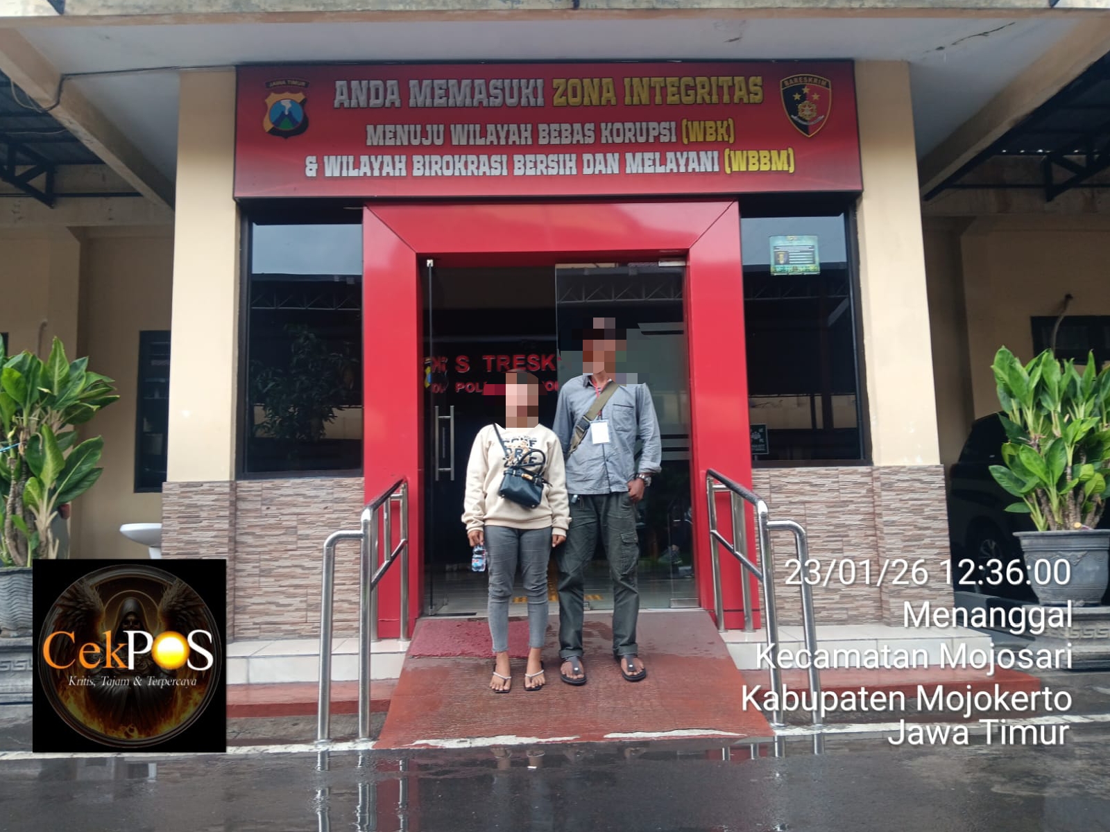 Mojokerto, cekpos.id – INP 22 th warga Desa Sumber Girang, Kec. Puri, Kab. Mojokerto yang merupakan korban penyebaran foto yang tidak semestinya di kosumsi publik melalui medsos (Facebook) yang diduga dilakukan oleh salah satu admin pinjol (pinjaman Online), pada hari Jum’at, tanggal 23 Januari 2026 memenuhi panggilan penyidik Unit IV Tipidter Satreskrim Polres Mojokerto.