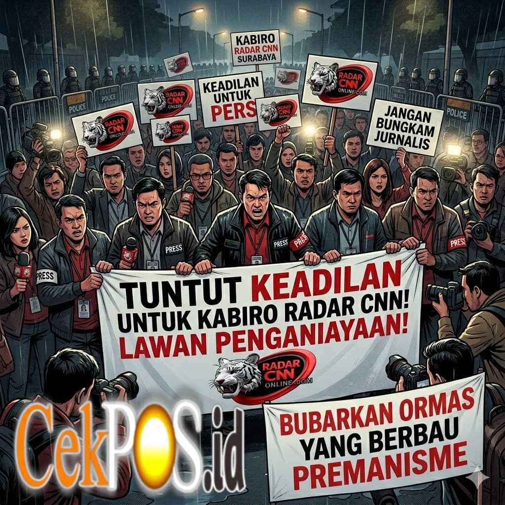 SURABAYA, Cekpos.id – Gelombang solidaritas dari kalangan jurnalis kembali menguat. Kali ini, jurnalis Radar CNN bersama organisasi masyarakat MADAS menyatakan sikap tegas melalui rencana aksi demonstrasi yang akan digelar pada Rabu, 08 April 2026. Aksi tersebut merupakan respons atas lambannya penanganan kasus dugaan penganiayaan yang menimpa Kepala Biro Radar CNN Surabaya, yang hingga kini dinilai belum menunjukkan titik terang dalam proses penegakan hukum.
