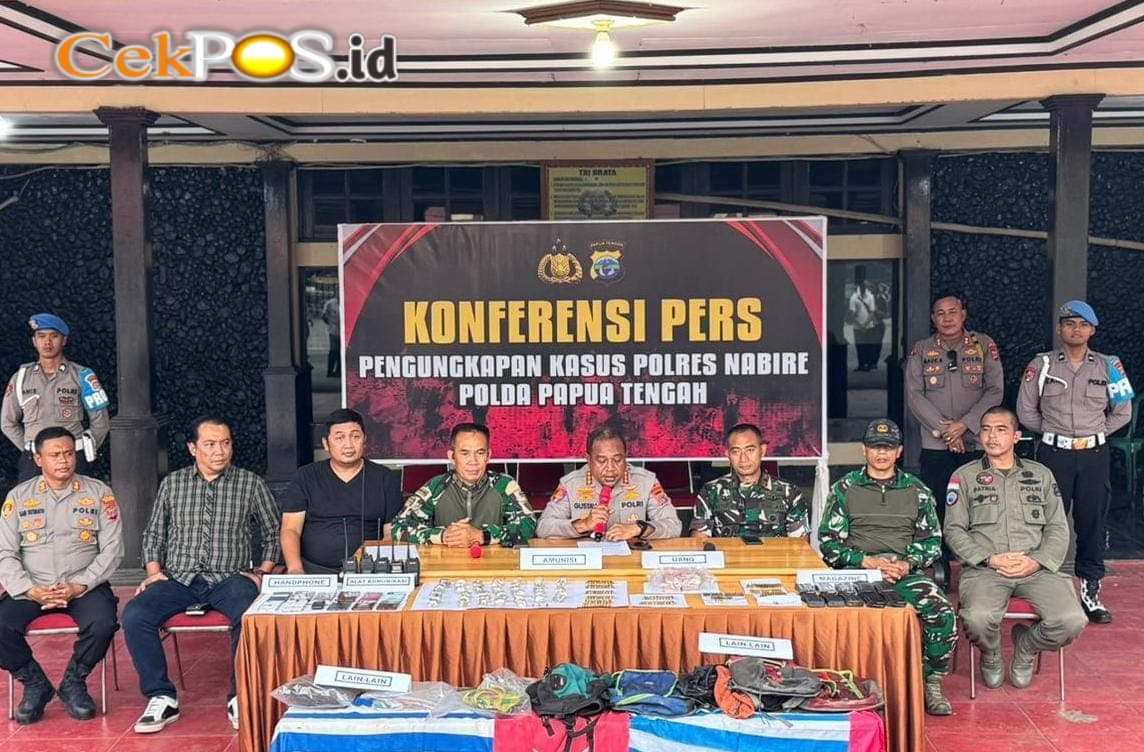 NABIRE, Cekpos.id — Aparat gabungan TNI-Polri menggelar konferensi pers terkait perkembangan upaya penegakan hukum terhadap target daftar pencarian orang (DPO) kelompok kriminal bersenjata (KKB) di Kabupaten Nabire yang digelar di Polres Nabire pada Senin (2/3/2026) pukul 16.00 WIT.