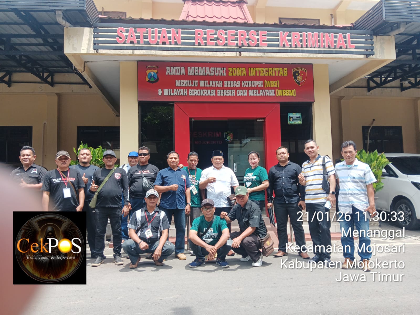 Mojokerto, Cekpos.id – Buntut celotehan, hinaan dan tuduhan tak mendasar yang dilakukan MM kepada Herianto, Sumidi, Djumain disebuah grup whatshap Gerakan Mojokerto Bangkit (GMB) beberapa hari yang lalu, gabungan ormas, LSM dan Lembaga Bantuan Hukum (LBH) yang ada di Mojokerto secara resmi melaporkan MM ke Polres Mojokerto, Rabu (21 Januari 2026).