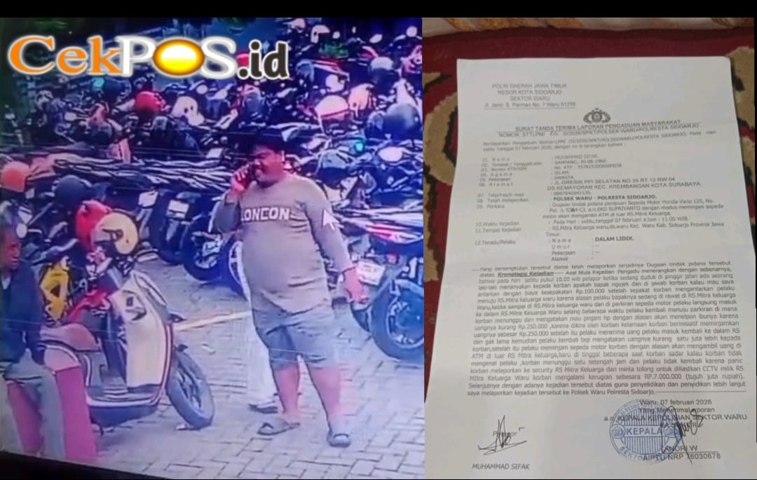 Korban telah melaporkan kejadian tersebut ke Polsek Waru, Polresta Sidoarjo dengan nomor laporan STTLPM/65/II/2026/SPKT/POLSEK WARU. Saat ini, pihak kepolisian sedang melakukan penyelidikan lebih lanjut dan berupaya melacak identitas pelaku melalui rekaman CCTV di area RS Mitra Keluarga.