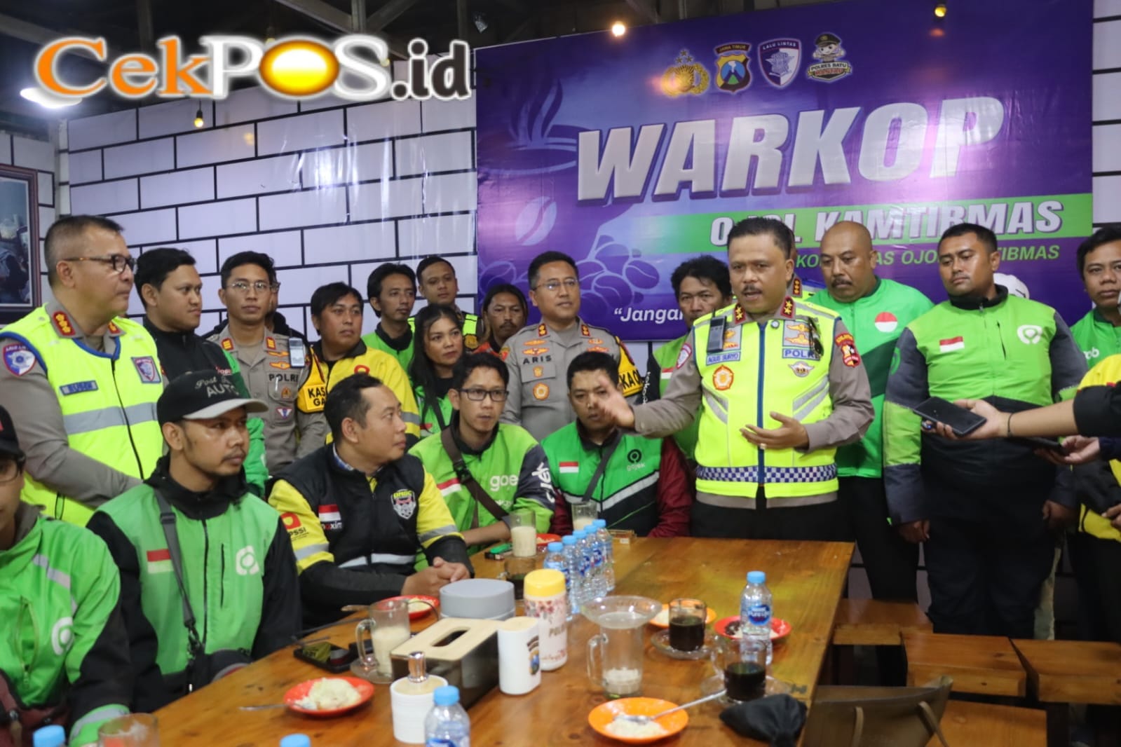 Melalui Program Polantas Menyapa, Kakorlantas Polri yang didampingi Direktur Lalu Lintas (Dirlantas) Polda Jatim, Kombes Pol Iwan Saktiadi dan Kapolres Batu AKBP Aris Purwanto tatap muka berdialog dengan para pengemudi Ojol.