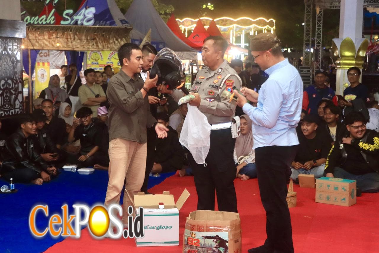 Bertepatan dengan perayaan Hari Jadi Kabupaten Probolinggo (Harjakapro) ke-280 tahun 2026, Satlantas Polres Probolinggo menggelar kegiatan edukasi keselamatan berkendara (safety riding) di Alun-alun Kraksaan, Minggu (19/4/26).