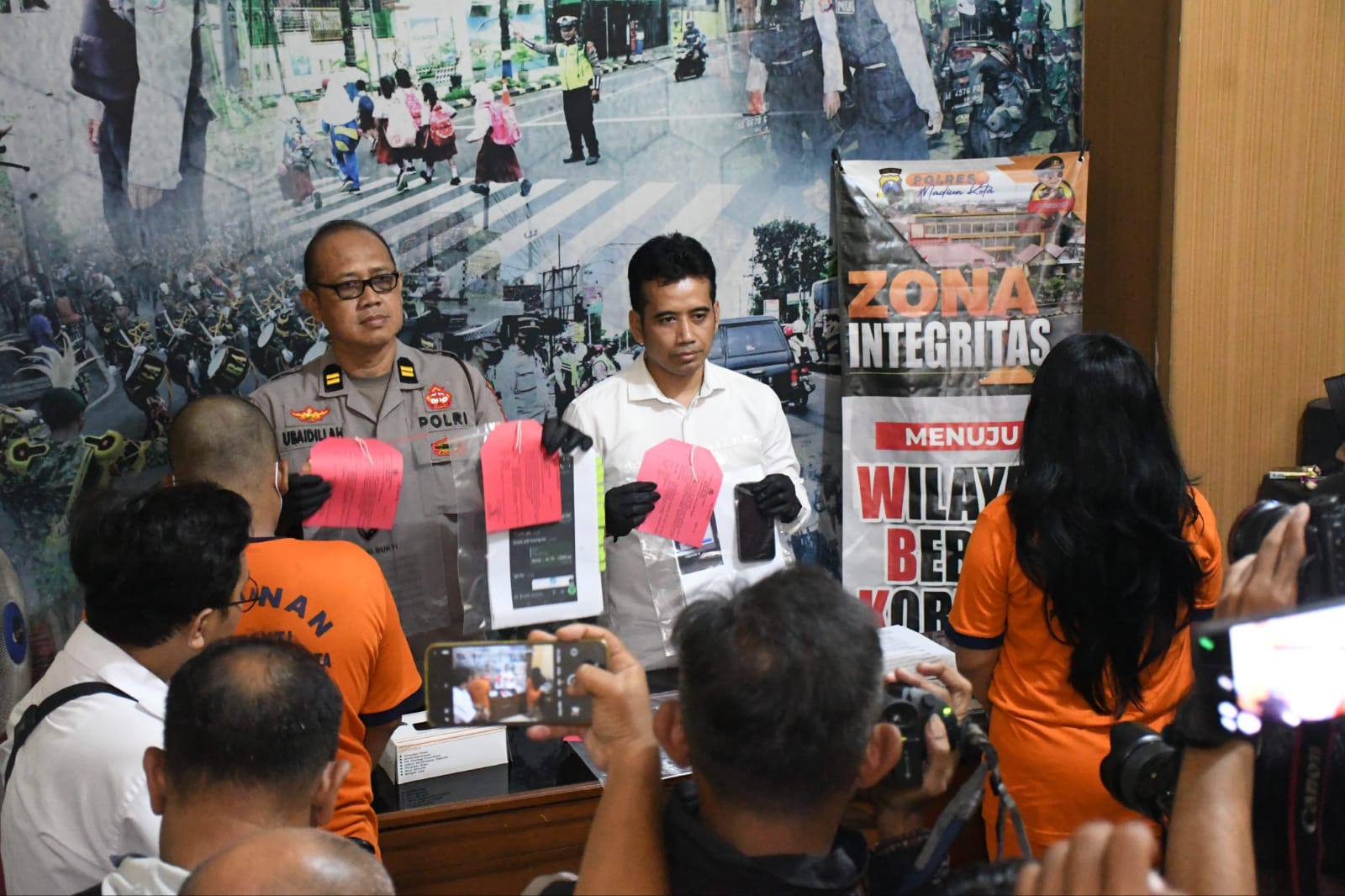 Polisi menyita sejumlah barang bukti, di antaranya dokumen percakapan WhatsApp, bukti transfer, surat pernyataan, serta satu unit iPhone 8 Plus.