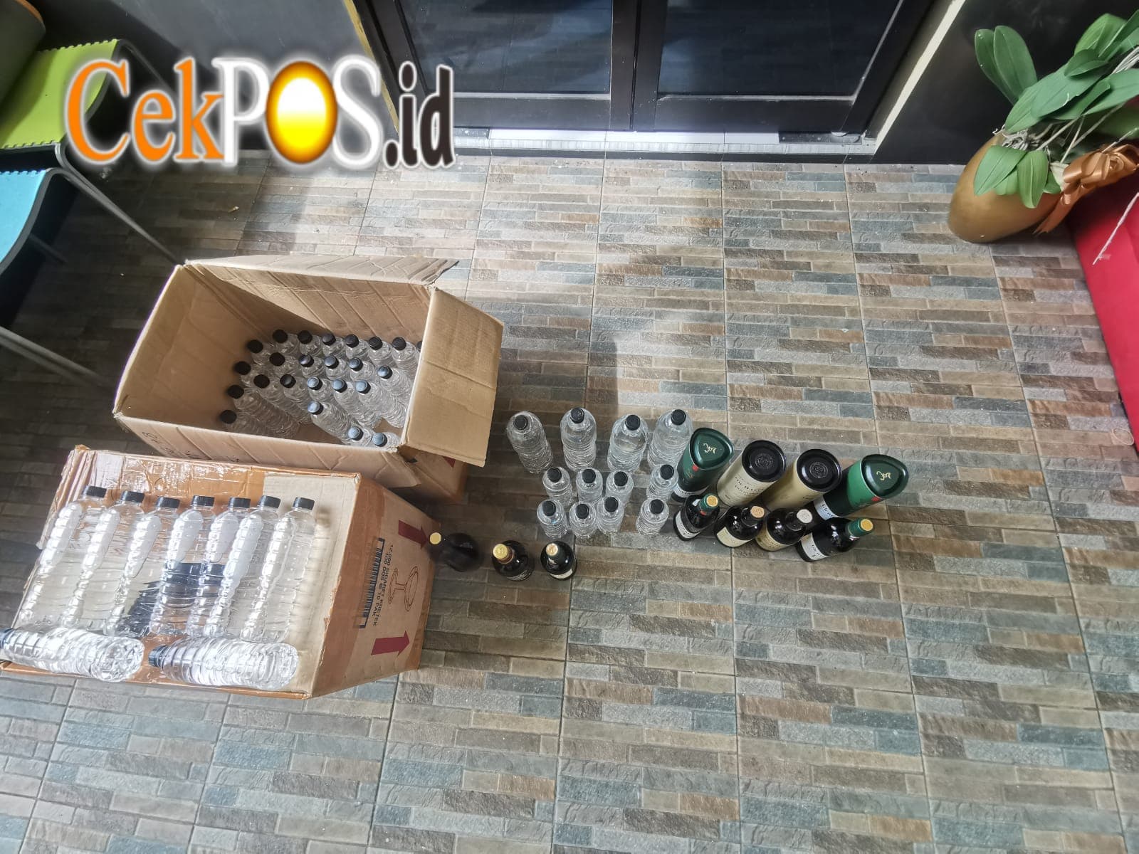 Selain itu Polisi juga menyita berbagai jenis minuman beralkohol, mulai dari produk impor hingga puluhan botol arak Bali yang dikemas dalam botol air mineral.