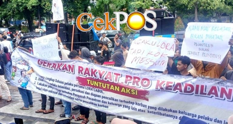 Dalam aksi tersebut, massa mendesak aparat penegak hukum Polda Jatim agar segera mengusut tuntas dugaan tindak pidana asusila berupa pencabulan terhadap seorang santriwati yang diduga melibatkan dua orang lora di Kabupaten Bangkalan.