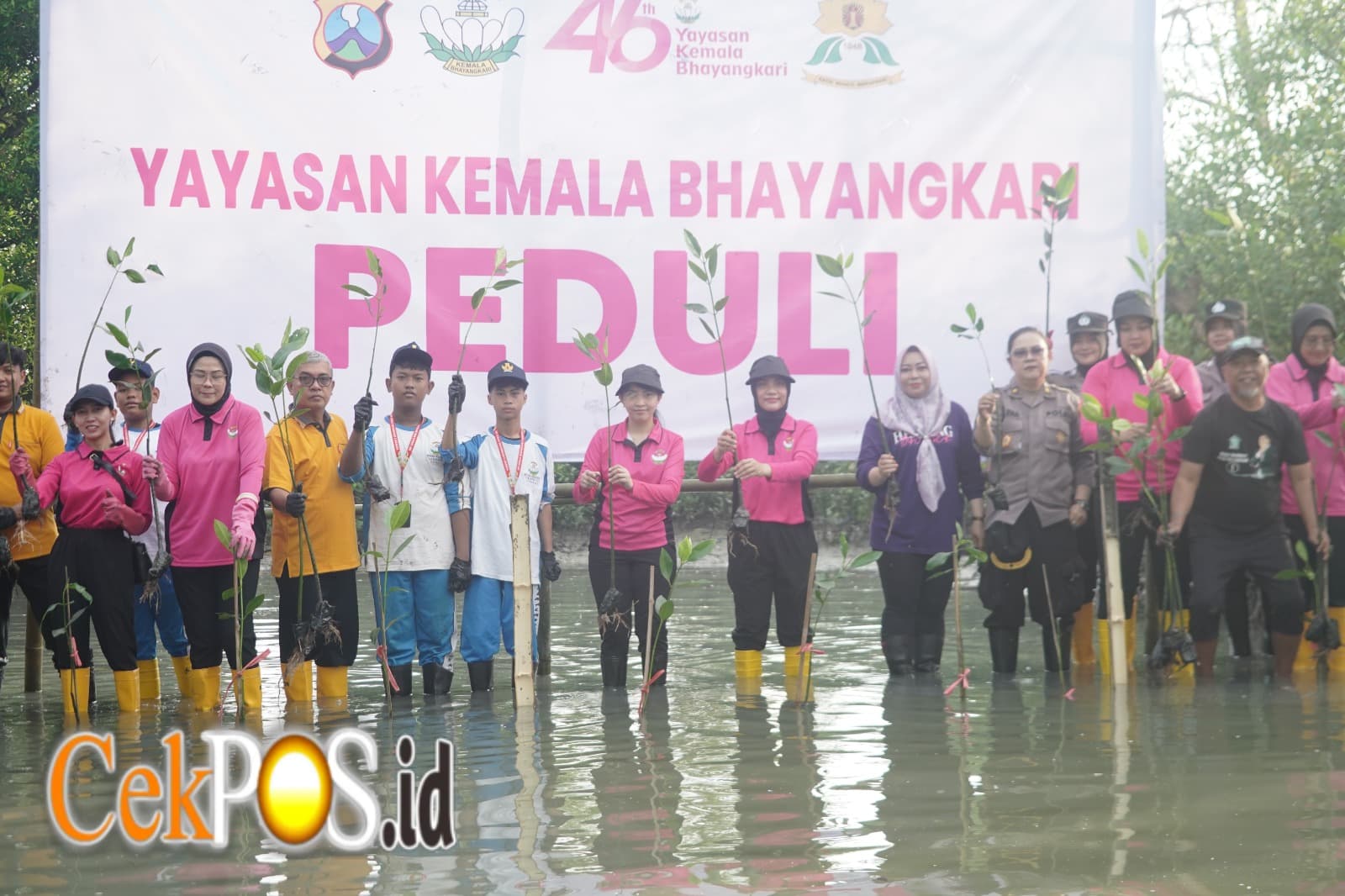 TANJUNG PERAK, Cekpos.id — Kawasan pesisir Jalan Greges Timur, Kalianak, kini memiliki benteng baru. Yayasan Kemala Bhayangkari (YKB) Cabang Polres Pelabuhan Tanjung Perak melakukan aksi nyata pemulihan lahan kritis dengan menanam ratusan bibit pohon mangrove dan bakau di kawasan Gang Buyuk Indah, Kecamatan Asemrowo, Rabu (22/4/2026) pagi.