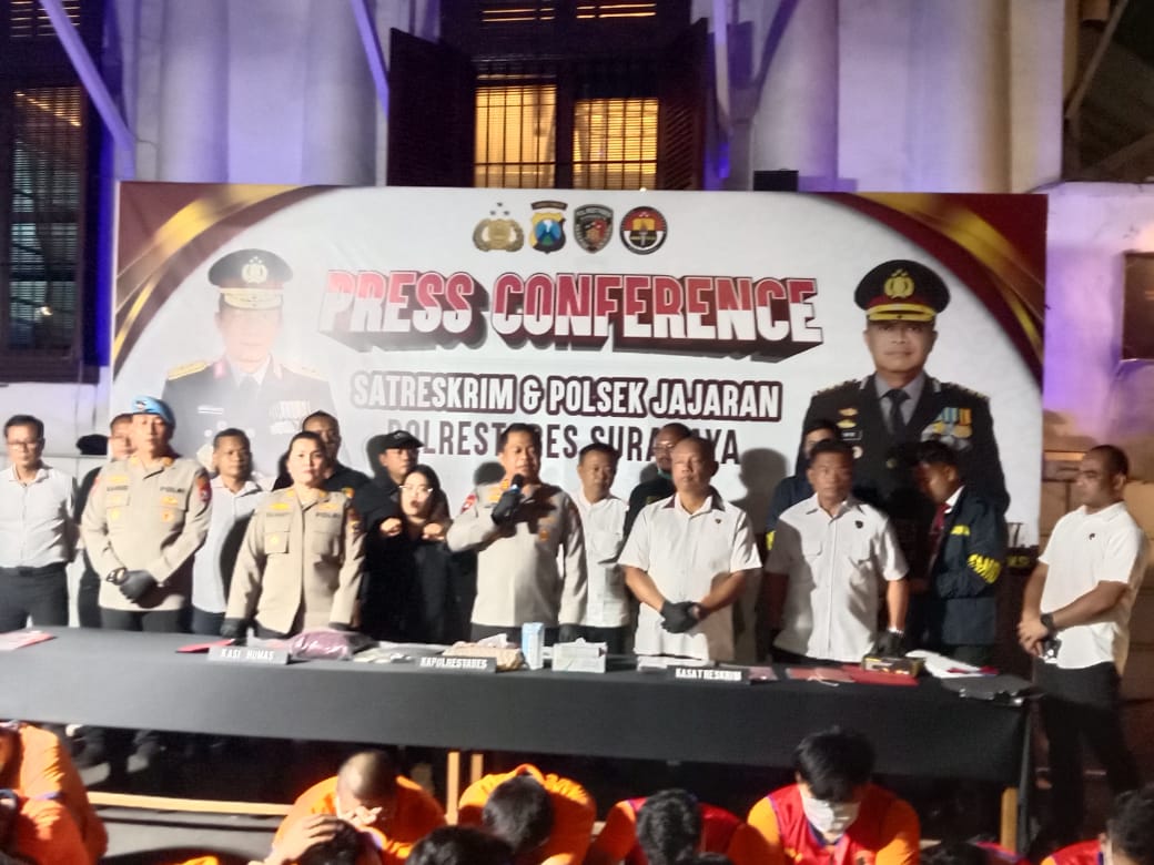 Tidak main main dalam mengungkap pelaku kriminal di Surabaya, Satreskrim Polrestebes Surabaya dan Polsek Jajaran berhasil mengamankan puluhan tersangka yang dipamerkan dalam rangka pemelihara Kamtibmas yang aman dan kondusif di Surabaya dengan ungkap sebanyak 43 kasus.